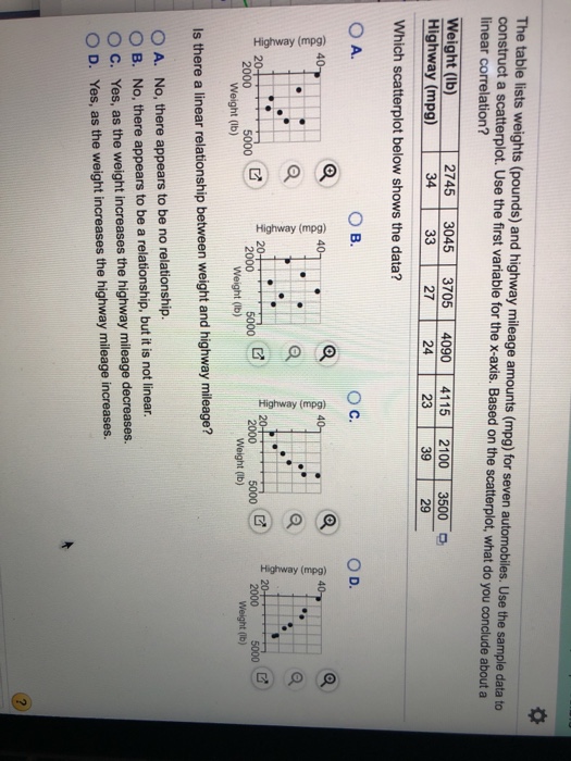 Solved The Table Lists Weights Pounds And Highway Mileage Chegg Com