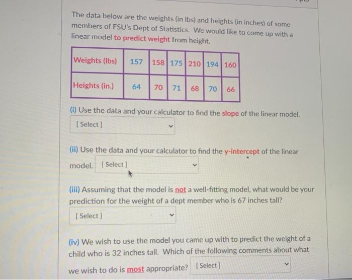 Solved The Data Below Are The Weights In Lbs And Heights Chegg Com